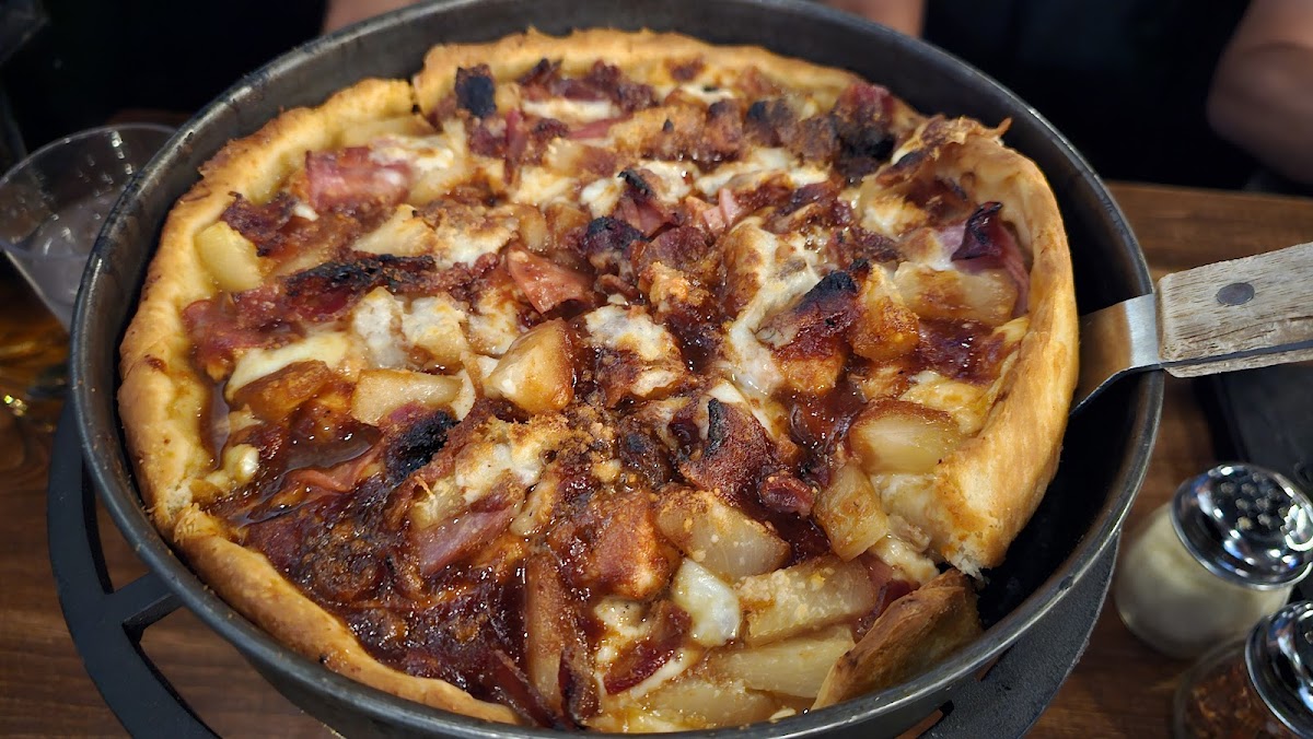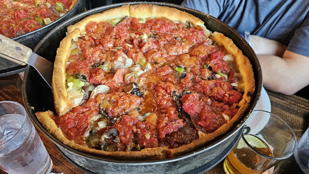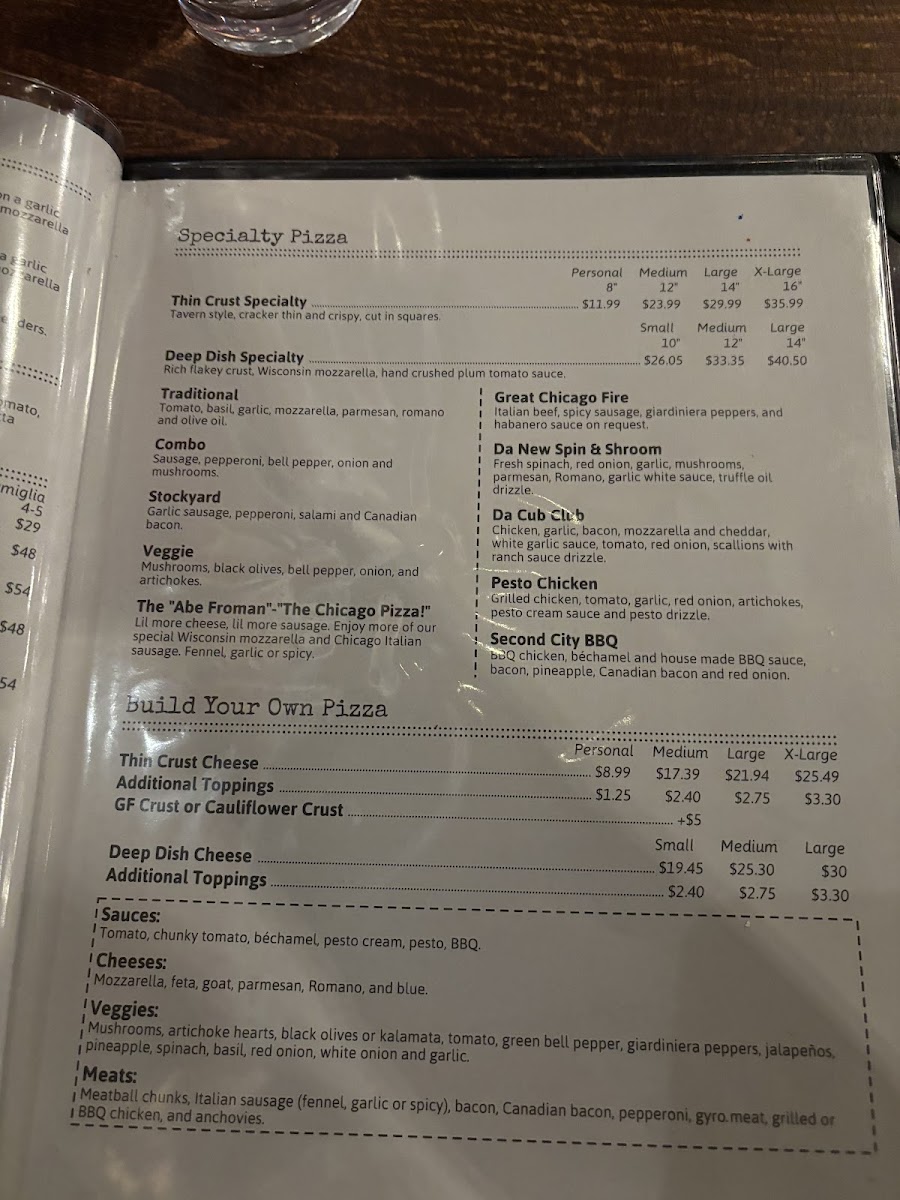 As you step inside, you’ll be greeted by a warm and bustling environment, perfect for family dinners or gatherings with friends. The decor echoes the spirit of the Windy City, making it an ideal backdrop for enjoying hearty meals. But the true stars of the show here are the pizzas, which come in two mouthwatering styles: the classic Tavern Style Thin Crust and the iconic Deep Dish.